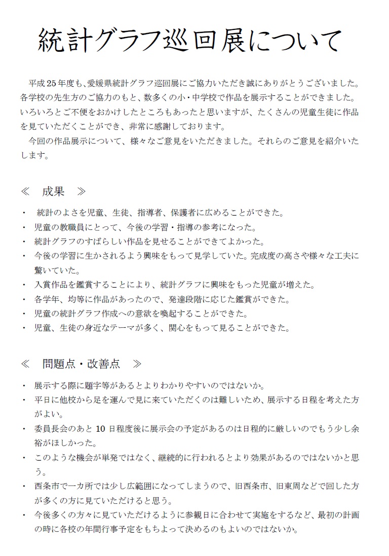 H27年度統計グラフコンクール優秀作品(小学校高学年・中学校の部)
