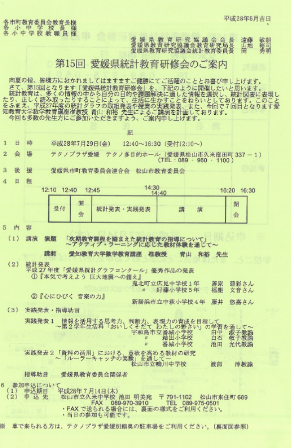 H28.7.29 第15回愛媛県統計教育研修会の案内